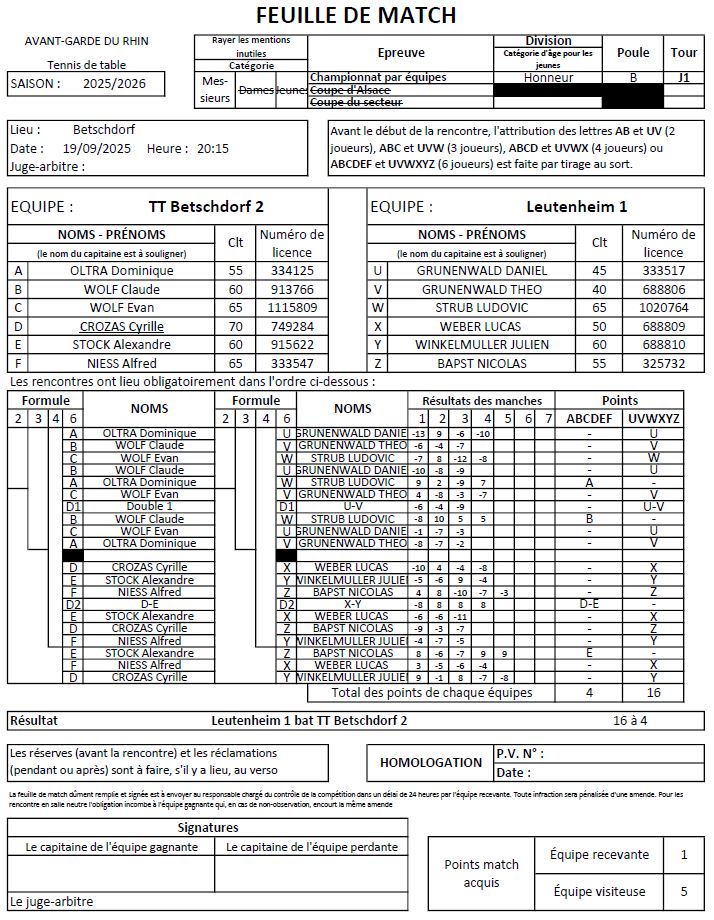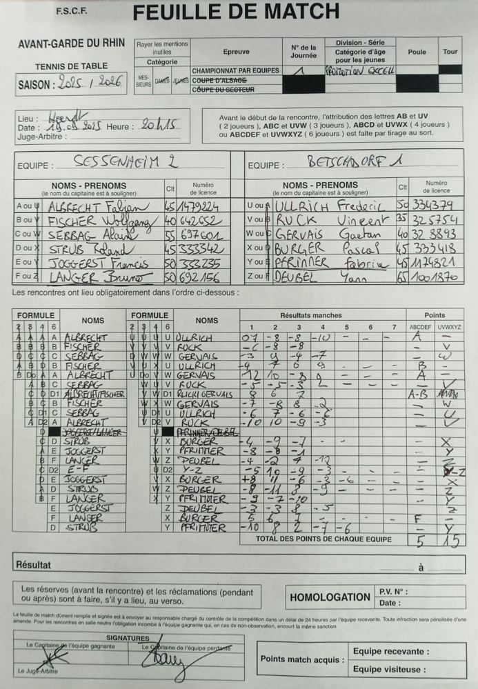 L’équipe 6 n’est pas arrivée à concrétiser une bonne entame (égalité avant les doubles) et s’est écroulée par la suite face à Val de Moder 2 pour s’incliner 5-9.
