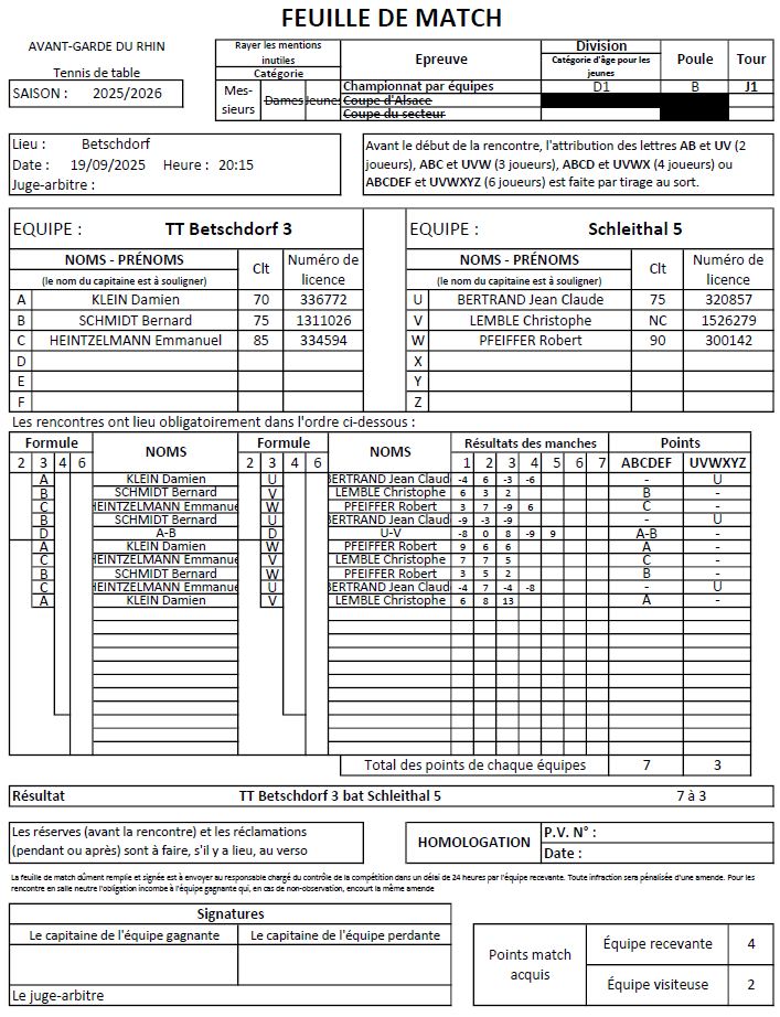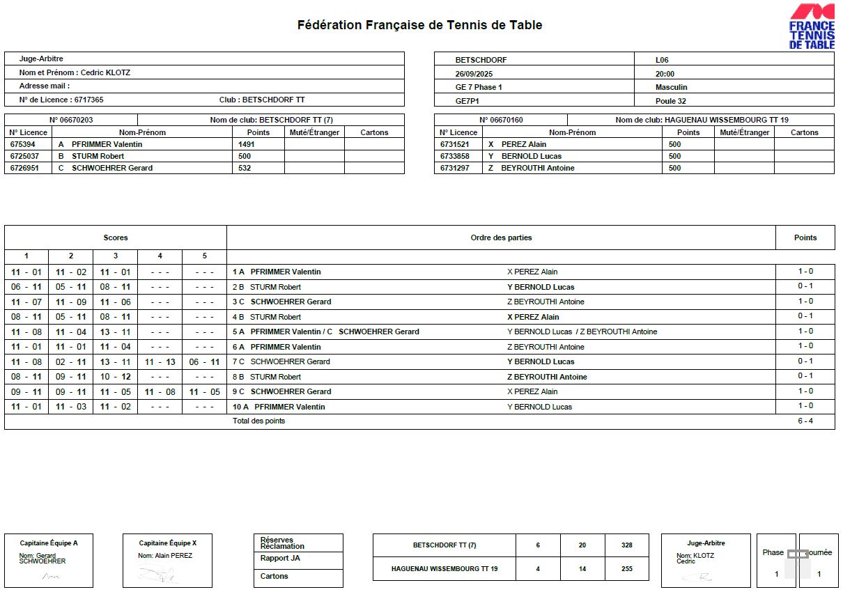 Contrairement à la saison précédente, l’équipe 7 de Gérard Schwoehrer a maitrisé son début de saison en s’imposant de justesse, et dans la douleur, contre TTHW 19 sur le score de 6 à 4.