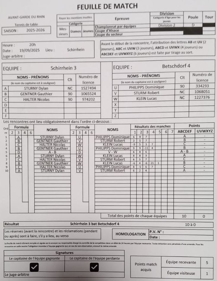 La 4 par contre entame la saison de la même façon catastrophique  que l’année dernière face à Schirrhein 3. La troupe de Bobby Sturm s’est fait balayer avec un sec 0-10. Même commentaire qu’à cette époque en 2024 : il va falloir se remonter les bretelles vite fait !!