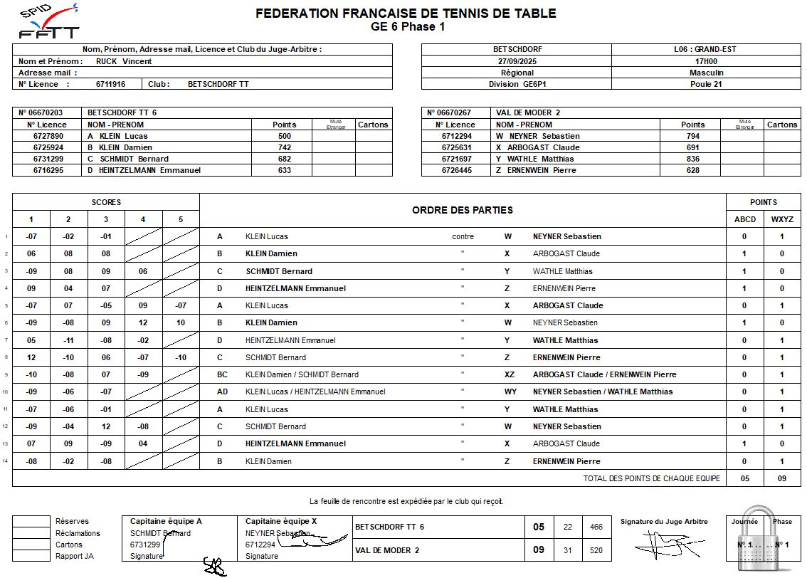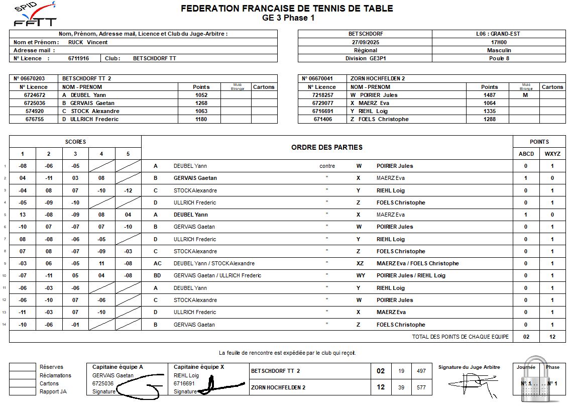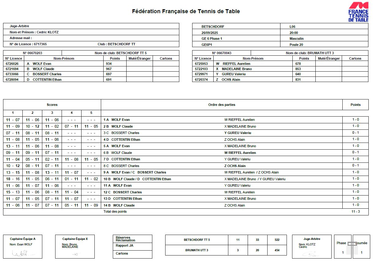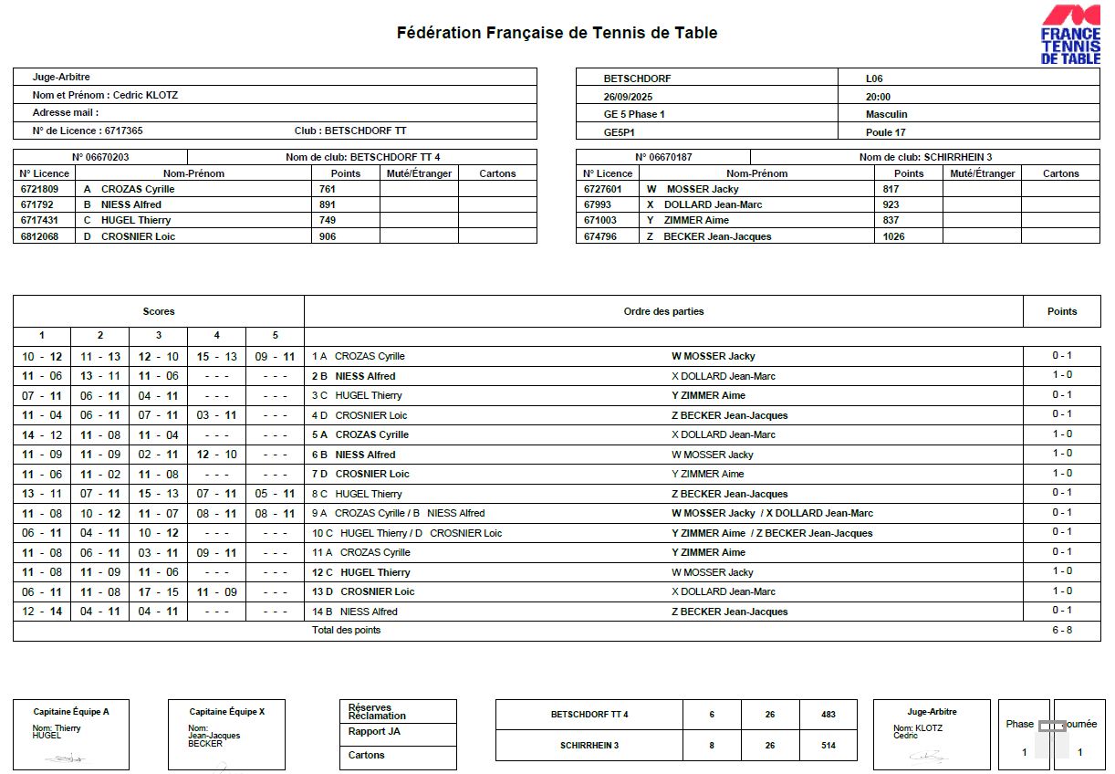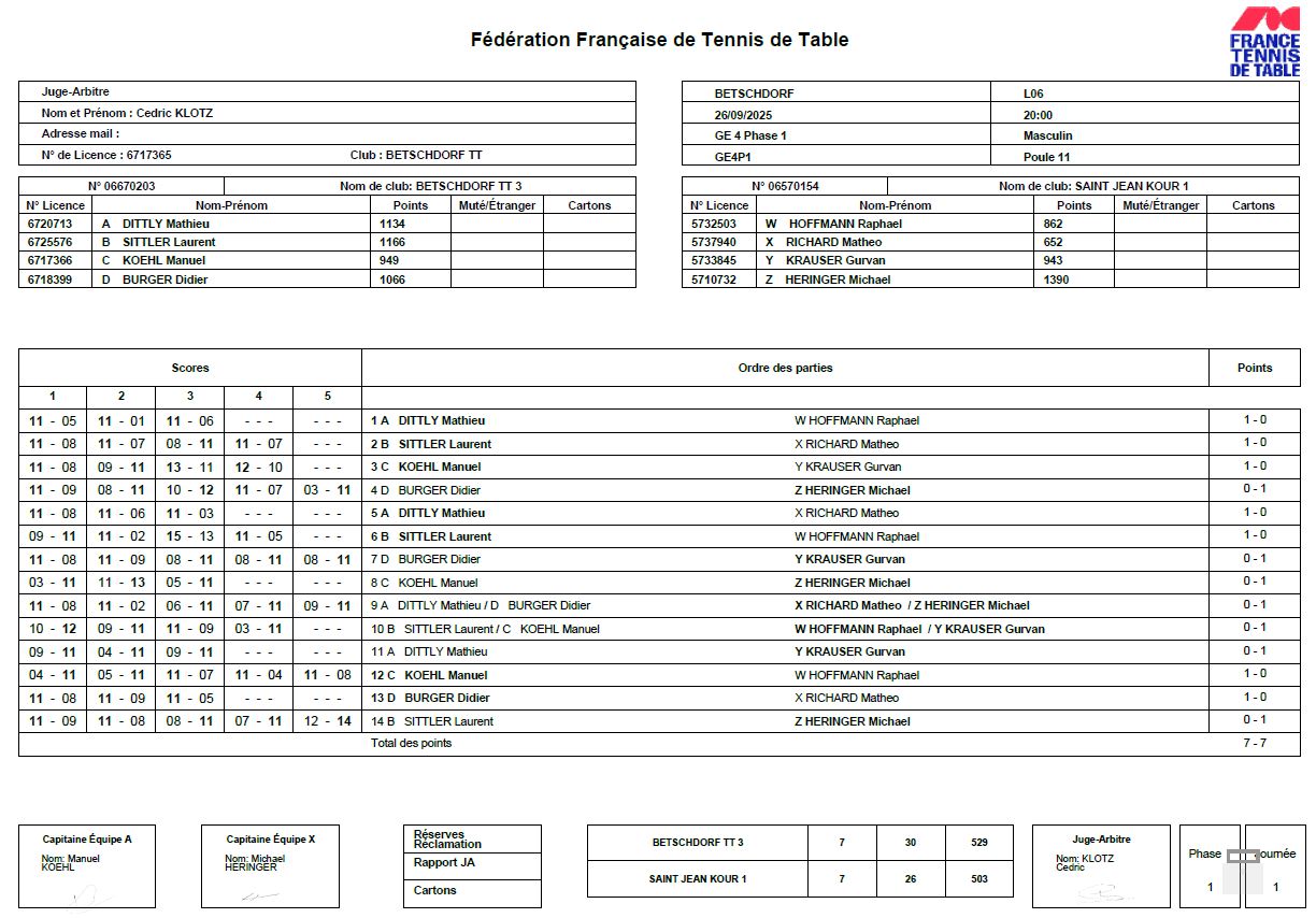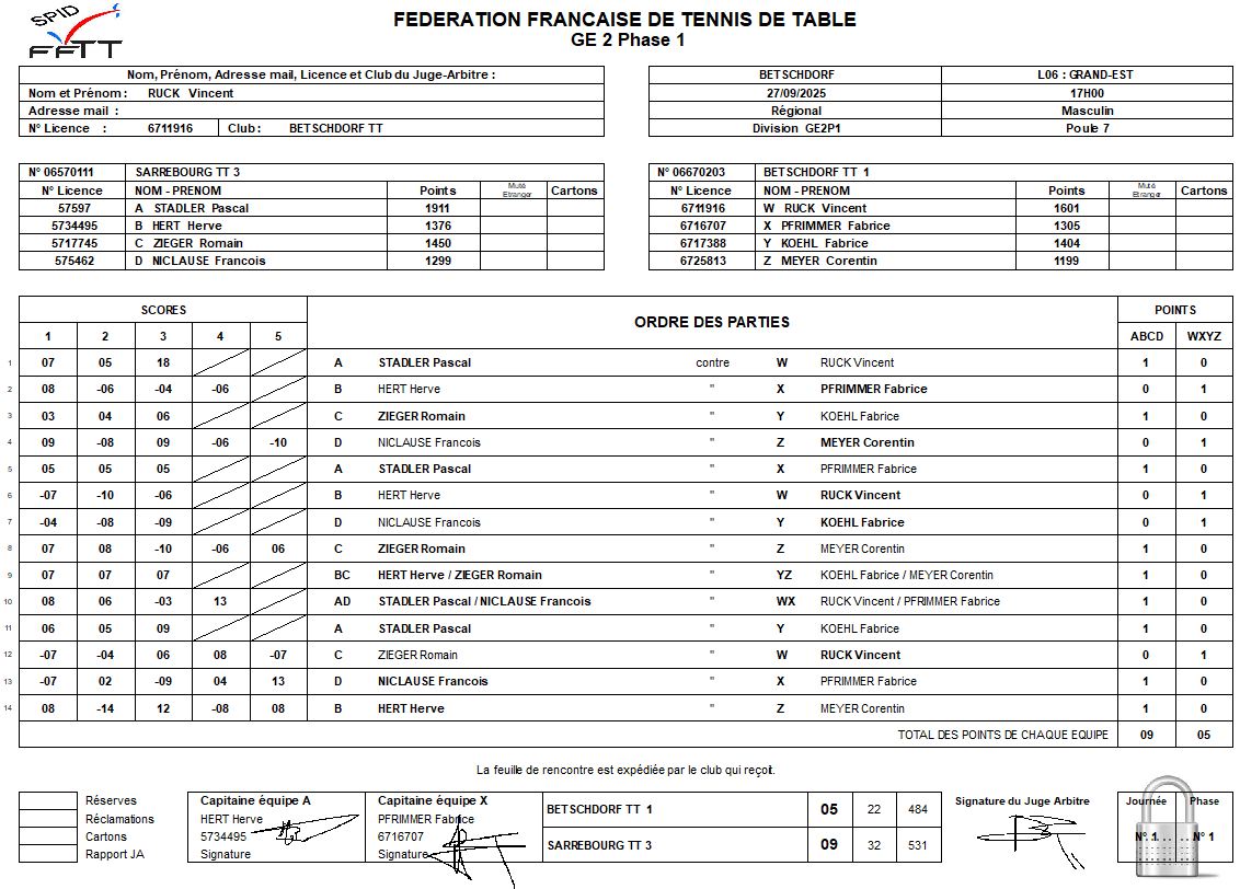 Programme/Résultats J1 FFTT