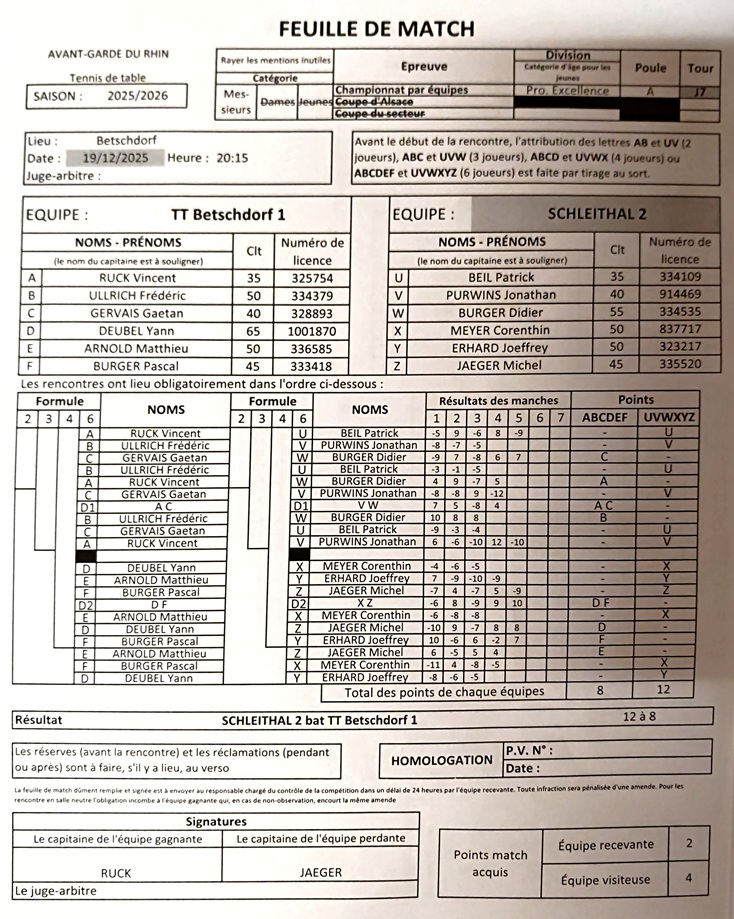 La 1 a fait mieux que résister contre Vendenheim 1. Portée par un Mathieu Arnold qui a retrouvé toutes ses sensations et auteur de 3 victoires dont 2 superbes perfs, elle a longtemps fait jeu égal avec son adversaire avant de concéder une courte défaite 8-12 en toute fin de rencontre. Elle reste calée en milieu bas de classement mais relativement à l’abri de la zone rouge.
