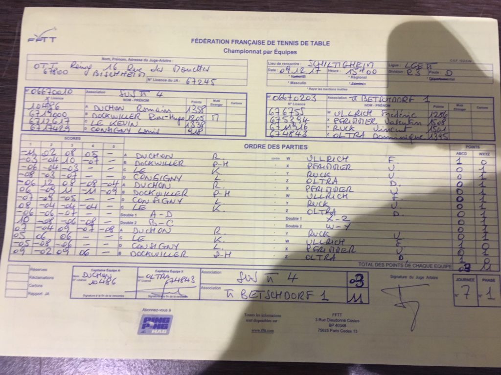 TTB2 – Wolxheim 2 7 – 7 (Fab 2V+D, Guillaume 2V, Tom 1V+D, Gaetan 1V)